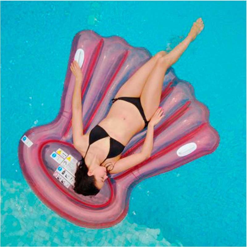 Con la colchoneta hinchable modelo Shell de la marca Jumbo podrás relajarte mientras tomas el sol en la piscina o la playa. Es ideal para un usuario mayor de 14 años gracias a que cuenta con 2 cámaras de aire equipadas con válvula antirretorno. Está fabricada en vinilo semitransparente de color rosa y cuenta con asas en los laterales para que puedas moverla con total comodidad. Su diseño en forma de concha la hace muy original y divertida, ¡no te quedes sin ella!