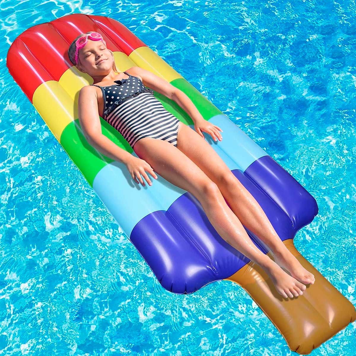 ¡Prepárate para disfrutar del verano como nunca antes gracias a esta colchoneta inflable de helado multicolor! Fabricada con PVC de alta calidad, esta colchoneta te ofrece la resistencia y durabilidad necesarias para soportar el peso de un adulto. Diseñada para 1 persona, esta colchoneta es perfecta para relajarte y disfrutar del sol, pero también para montar verdaderas aventuras acuáticas con tus amigos y familiares. Su colorida y divertida apariencia te hará destacar en la piscina o en la playa, siendo el centro de todas las miradas. Se trata de una colchoneta recomendada para mayores de 6 años, por lo que es ideal también para los niños. Es muy fácil de inflar y su diseño es muy seguro, ya que pesa muy poco y es muy manejable. Si este verano quieres pasarlo en grande, este helado inflable de la marca JetLag será tu aliado perfecto.