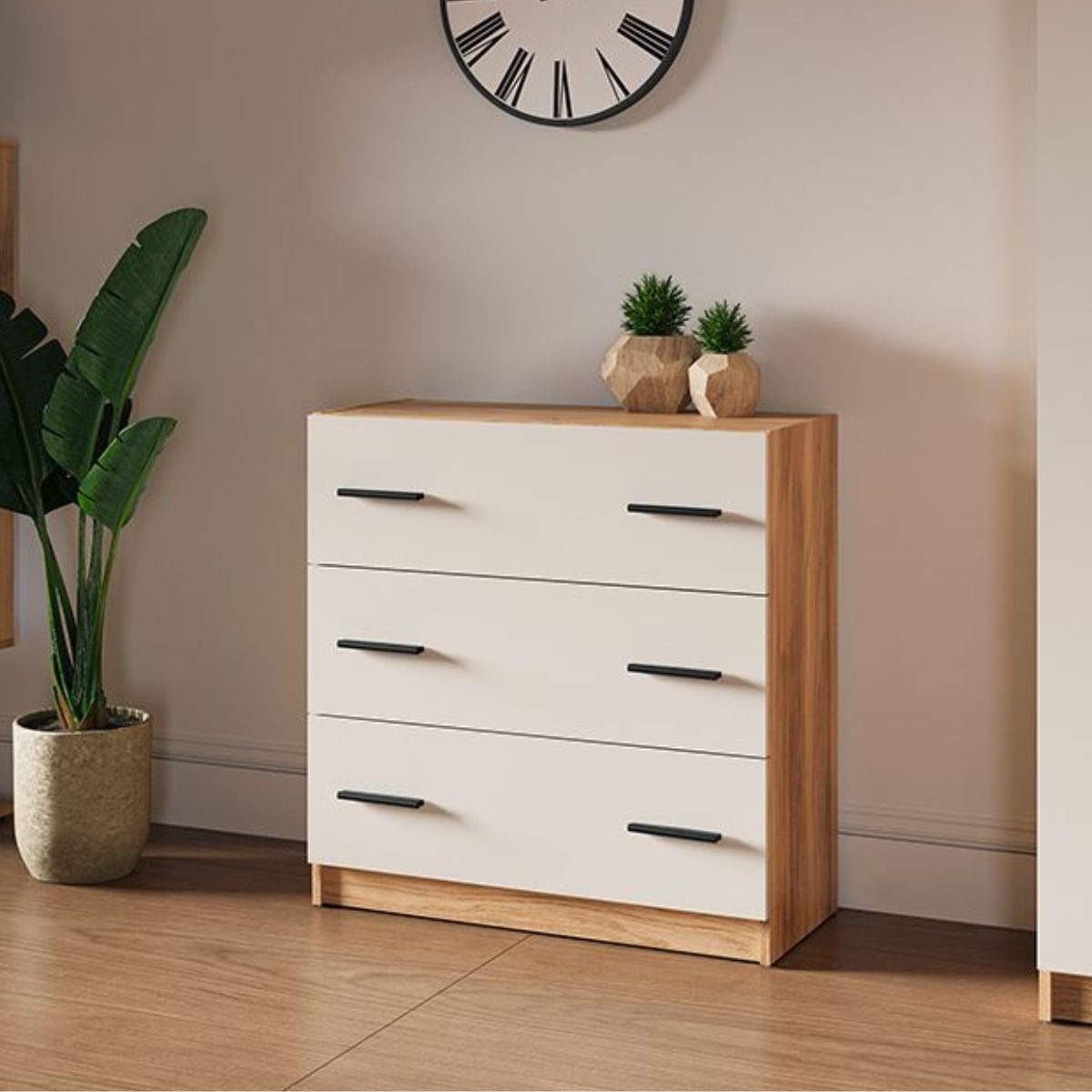Dispone de tres cajones amplios que permiten organizar ropa, textiles, accesorios o cualquier objeto que quieras tener bien guardado y a mano. Su distribución facilita el orden y ayuda a mantener el espacio despejado, algo clave para que el dormitorio respire calma y equilibrio. Los cajones se abren con suavidad y resultan cómodos en el uso diario. Los tiradores en color negro aportan un contraste moderno y sofisticado que refuerza su estética contemporánea, sumando personalidad al conjunto sin excesos. La cómoda Elba Mauvella es una opción práctica, elegante y funcional, perfecta para quienes buscan un mueble de almacenaje bien diseñado, con materiales de calidad y un estilo que encaja fácilmente en cualquier hogar.