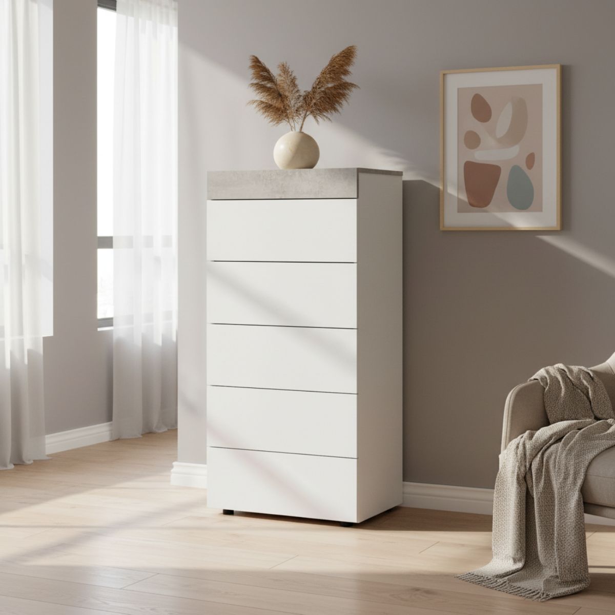 Si necesitas espacio extra en tu habitación, esta cómoda modelo Tekkan es justo lo que necesitas para guardar y organizar todo aquello que necesites. Esta cómoda es ideal ya que cuenta con 5 amplios cajones en los que podrás almacenar todo tipo de objetos y prendas. Fabricada en melamina de alta calidad, la resistencia y durabilidad están garantizados.