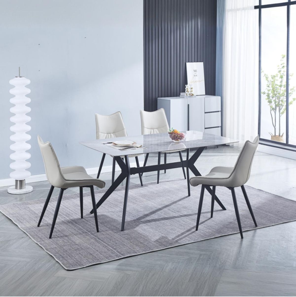 Elegir la mesa y sillas que decorarán tu salón o comedor no es tarea sencilla por eso, te presentamos este encantador conjunto modelo Calista ideal para completar tu hogar con un toque de elegancia y sofisticación. Formado por una mesa y 4 sillas del modelo Calista, tendrás un lugar donde acoger y disfrutar de tus reuniones familiares o con amigos. Su mesa, formada por un amplio tablero con estampación marmolea y sus 4 sillas con respaldo y asientos acolchados permitirán que tus invitados descansen y disfruten de horas de sobremesa. Su tejido es suave y de calidad por lo que la resistencia y comodidad están totalmente garantizadas. Tanto la mesa como las sillas cuentan con patas metalizadas con acabado en color negro ideal para combinarlas con cualquier decoración. Su sencillo montaje y materiales de alta calidad le aportarán a tu hogar el toque de exclusividad y elegancia que necesita. No lo pienses más, hazte con tu conjunto Calista y presume de comedor.