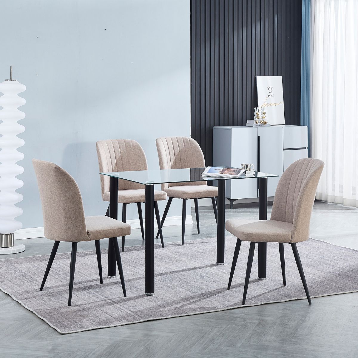 Si buscas un conjunto moderno y elegante para renovar tu comedor sin complicaciones, este pack formado por la mesa Yuri y 4 sillas Rory es todo un acierto. La mesa Yuri combina funcionalidad y estilo gracias a su sobre de cristal templado transparente, perfecto para dar amplitud visual, y sus patas tipo tubo en acero pintado de negro, que aportan un aire industrial muy actual. Con espacio ideal para 4 a 6 comensales, es perfecta para cenas familiares, comidas con amigos o reuniones improvisadas.