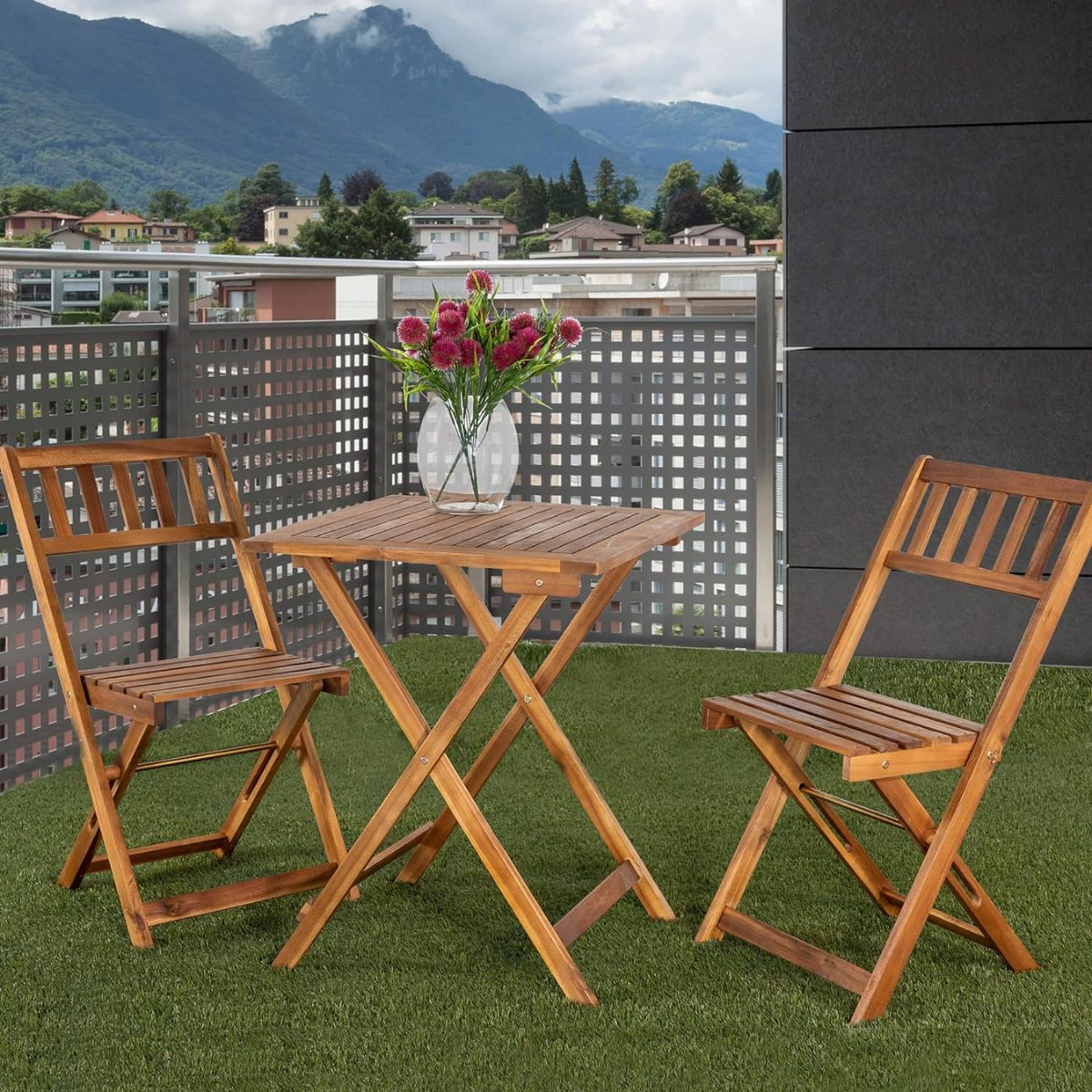 ¿Tienes poco espacio en tu jardín, balcón o terraza, pero te encantaría tener un conjunto de exterior? Te presentamos este estupendo conjunto de jardín formado por 2 sillas y 1 mesa de madera de acacia en color natural que te encantará. Es un conjunto fácilmente combinable ya que, gracias a su diseño en madera y color natural, funciona bien con cualquier estilo de decoración de exterior. Su diseño clásico con acabado natural y superficie lisa de listones te aportarán un gran confort para esos momentos de relax. Es resistente al agua, y sus listones permiten un secado rápido, por lo que también es resistente al óxido. Además, es plegable, por lo que si en algún momento prefieres guardarlo podrás hacerlo fácilmente. ¡Consíguelo ahora a un precio de lo más bestia!