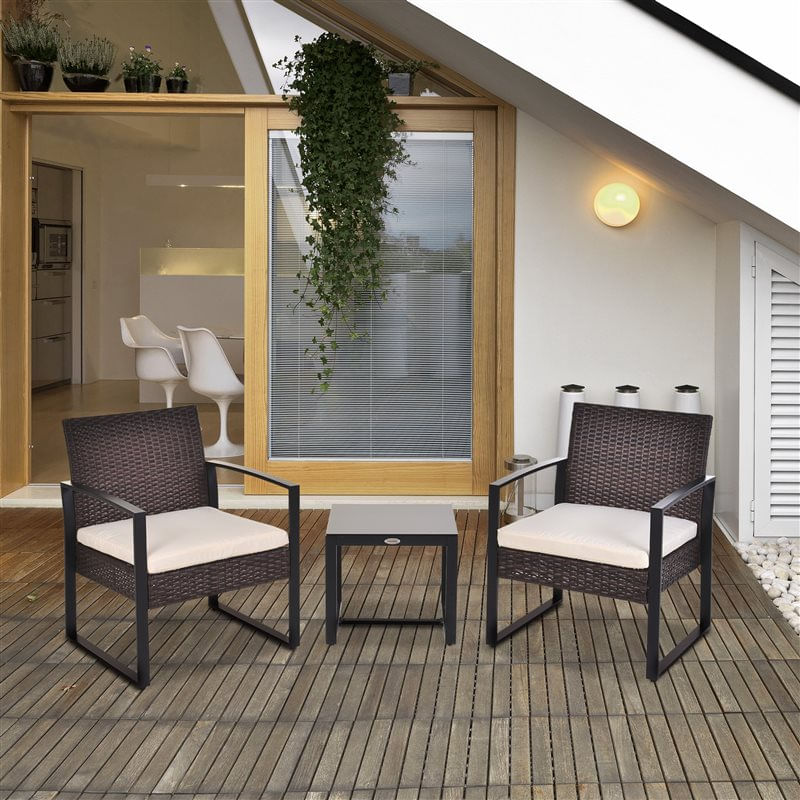 ¡Te encantará este conjunto de ratán de Outsunny! Está compuesto por 1 mesa y 2 sillas con cojines de asiento. Aunque está pensado para exteriores como jardín, terraza, etc., su bonito diseño también lo hace apto para su colocación en interiores. Las 3 piezas están fabricadas con estructura metálica, mientras que la encimera de la mesa es de cristal templado con 5 cm de espesor. Las 2 sillas cuentan con el asiento y el respaldo cubiertos de bonito ratán PE y las fundas de los cojines son extraíbles, por lo que es muy sencillo para poder sacar y lavar. ¡No querrás levantarte de aquí!