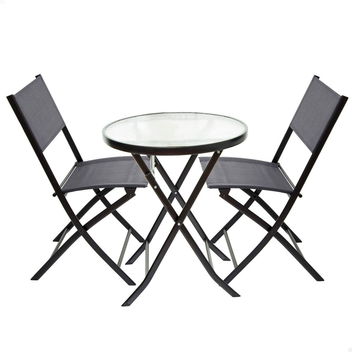 ¿Quién dijo que una terraza o un balcón no pueden tener su conjunto de muebles? Esta composición de terraza de la marca Aktive Garden es perfecta para darle un toque de lo más cuco a tu hogar. Está compuesta por 1 mesa redonda y 2 sillas plegables que te permitirán desayunar, tomar un picoteo, leer, jugar a las cartas o simplemente charlar con tu pareja. La mesa y las sillas cuentan con una estructura de acero y las sillas tienen el asiento en textileno. El conjunto es de lo más estético y práctico y, gracias a la calidad de sus materiales tanto la mesa como las sillas resistirán los efectos de la intemperie sin problema. El conjunto presenta un diseño moderno y sofisticado que combinarán perfectamente con el resto de elementos de tu terraza o balcón. ¡Ya lo sabes! Aprovecha al máximo el espacio de tu hogar con este conjunto de terraza de la marca Aktive Garden.