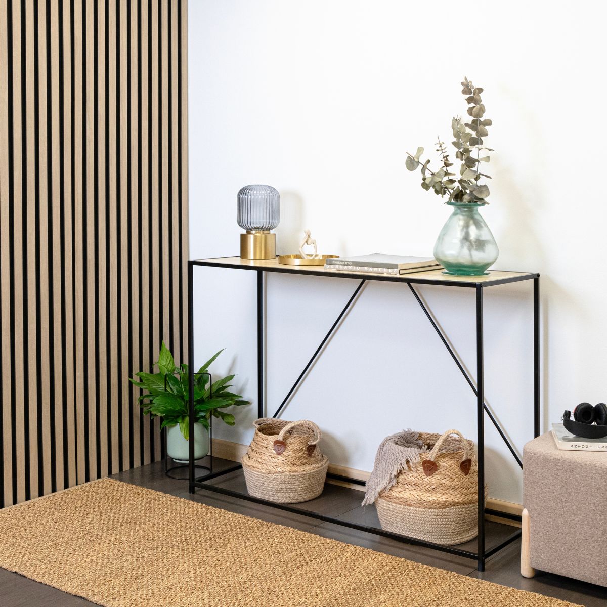 Diseñada especialmente para recibidores o pasillos estrechos, la consola MOA aprovecha al máximo el espacio disponible gracias a sus medidas compactas, sin sacrificar su capacidad de almacenamiento y organización. Su estilo industrial y diseño minimalista permiten que se integre fácilmente con diversas decoraciones interiores, desde las más modernas hasta las más tradicionales.