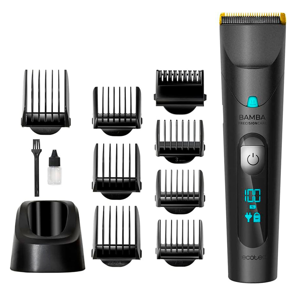 ¡Con la máquina cortapelos Bamba PrecisionCare Wet&Dry de Cecotec no necesitarás ir al barbero! Sus cuchillas de acero con revestimiento de titanio garantizan un corte preciso y duradero, sin comprometer la suavidad de tu cabello. Además, podrás elegir entre su uso inalámbrico o con cable, dándote total libertad de movimiento mientras realizas el corte. Gracias a su protección IPX6 al agua, puedes usarla incluso bajo la ducha, facilitando la limpieza y permitiéndote ahorrar tiempo. La pantalla LED y el indicador de estado de la batería te mantendrán informado en todo momento, para que nunca te quedes a medias en tu sesión de arreglo. Con las longitudes de corte ajustables de 0,5 hasta 30 mm y los peines guía incluidos en medidas de 3, 4-6 mm, 7-9 mm, 10-12 mm, 16-18 mm, 22-24 mm y 28-30 mm, podrás lograr el estilo que desees con precisión milimétrica. ¡Tu creatividad no tendrá límites! Disfruta de una autonomía de hasta 120 minutos, para que puedas realizar múltiples cortes sin interrupciones. Junto con la cortapelos se incluye una serie de accesorios que te permitirán sacar el máximo partido a tu cortapelos. ¡No esperes más y consigue tu Bamba PrecisionCare Wet&Dry a un precio a lo bestia!