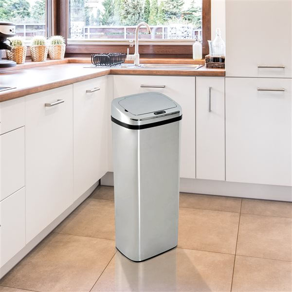 ¿Estás molesto por el cubo de basura que tienes actualmente en la cocina? Si te fastidia el olor desagradable, las moscas o bichos y que tus mascotas se acerquen, te presentamos la solución, nuestro cubo de basura automático e inteligente es ideal para tu hogar. Viene equipado con un sensor por lo que te permitirá abrirlo sin tener que tocar la tapa con las manos. Puedes abrirlo con sólo acercarte o con un botón táctil que lleva incorporado. Se cierra totalmente cuando no lo estás usando aislando en él el olor y evitando así la aparición de insectos, malos olores y que nuestras mascotas se acerquen a él.