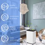 Este modelo cuenta con un diseño práctico y silencioso que solo emite 43 dB, lo que lo convierte en una excelente opción para espacios de descanso. Con varias funciones, como el temporizador de 24 horas y el apagado automático al llenar el depósito, asegura un funcionamiento eficiente y cómodo. Además, su sistema de ruedas y asa facilita el transporte. La pantalla LED te permite monitorear el nivel de humedad y el estado del equipo, y el bloqueo infantil garantiza un uso seguro en hogares con niños pequeños.