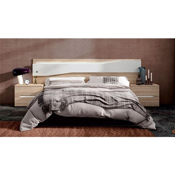 La fabricación de este conjunto es con melamina de alta calidad en color blanco y sable, y en el cabecero lleva incorporado un led, que generará un buen ambiente en tu habitación ¿A qué esperas para lucir una habitación a la última? Fabricación nacional. Se trata de mobiliario con kit de montaje, que incluye manual de instrucciones y tornillería.