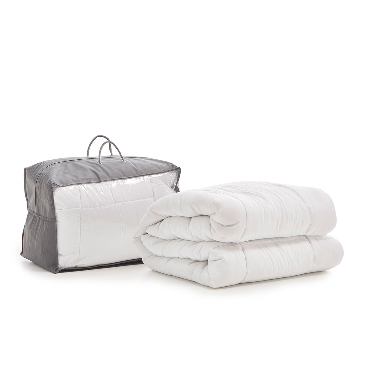 Estupendo edredón nórdico para la temporada primavera/verano de Matris, fabricado con poliéster microfibra 100% en la parte exterior y 100% fibra hueca siliconizada en la parte interior. El nivel de gramaje del relleno es de 300gr/m², mientras que el gramaje total es de 470gr/m². Es un edredón hipoalergénico y transpirable, muy versátil para uso diario. Se puede lavar en seco y es muy ligero. Tiene también un tacto muy suave y agradable que te aportará una sensación tan agradable que no querrás moverte de la cama. ¡No lo pienses más y consigue tu edredón nórdico a un precio bestial!