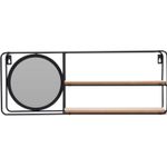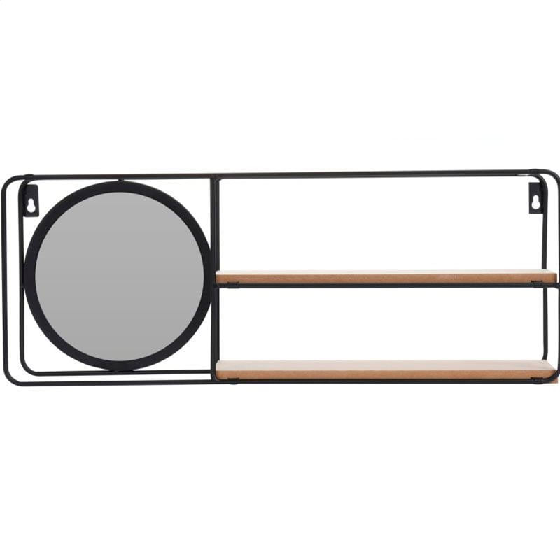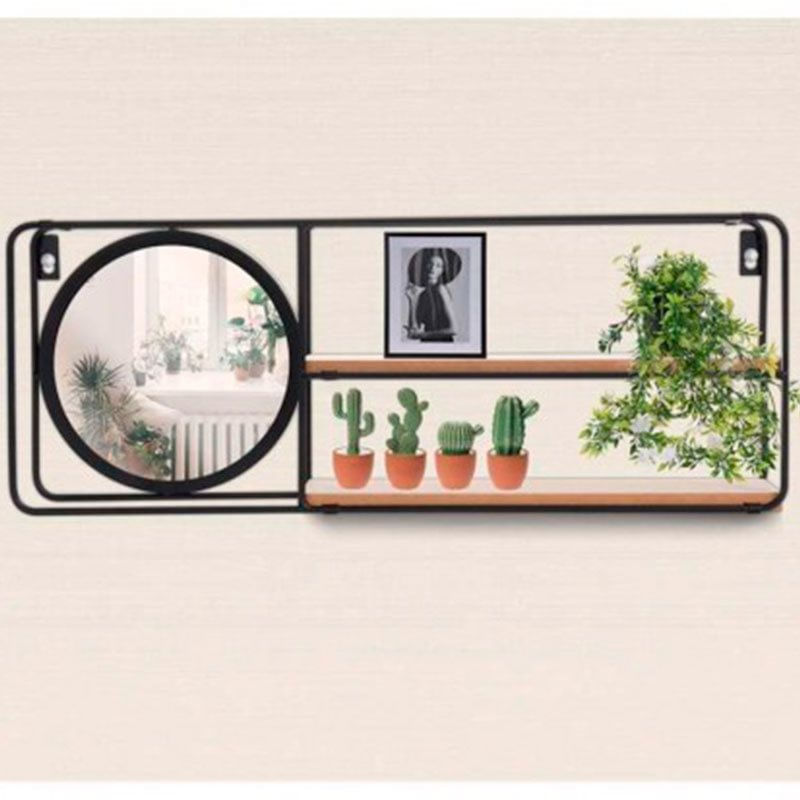 Este estante decorativo con espejo es ideal para decorar una zona de tu hogar de manera funcional. Colócalo en tu dormitorio, o incluso en tu recibidor. Gracias al espejo que incluye podrá darte esos últimos toques antes salir de casa. Cuenta con 2 baldas donde podrás exhibir tu decoración favorita o almacenar objetos y accesorios como gafas de sol, joyería, llaves o lo que tú necesites. La estructura está fabricada en metal con acabado en color negro y las baldas son de MDF. Su instalación será muy sencilla ya que viene con los orificios incorporados en la parte trasera. Gracias a su diseño minimalista combinará a la perfección junto a cualquier estilo decorativo.