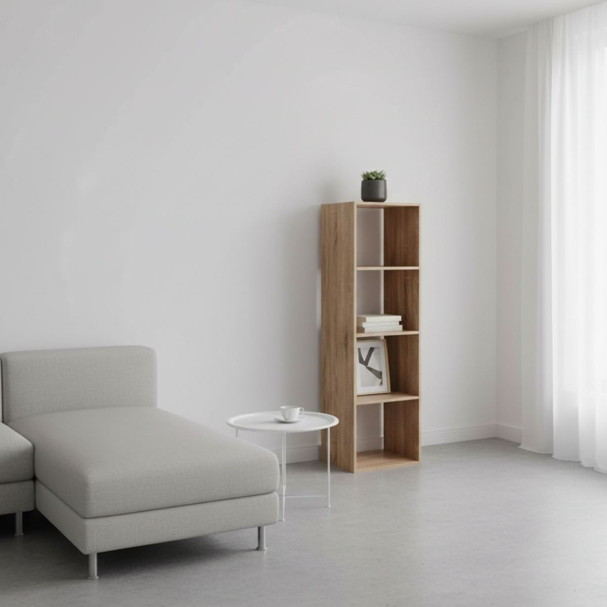 Esta estantería de la marca 5 Five está diseñada para colocarla en estancias de espacio reducido debido a su carácter vertical. Formada por 4 módulos huecos y 1 repisa superior, podrás colocarla tanto en el salón como en el dormitorio. Libros, material escolar y de oficina, elementos decorativos, ¡infinitas posibilidades! Esta estantería está fabricada en melamina y es de color blanco. Además, es súper fácil de instalar y de limpiar. ¡Cómprala ahora a un precio de chollo!