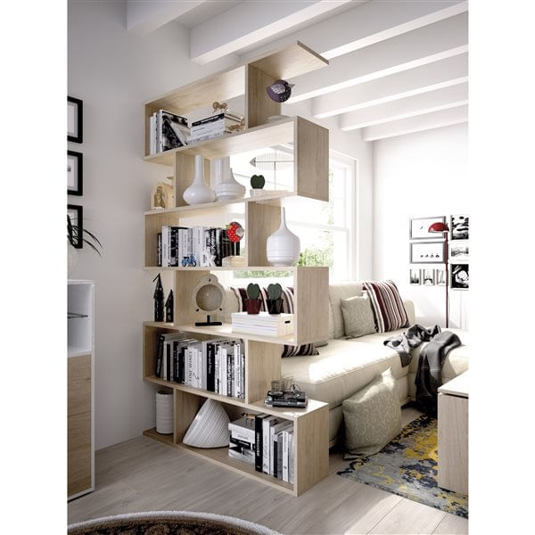 El mueble tiene 6 niveles, los cuales pueden ser usados para colocar objetos variados, como libros, películas, decorativos, y mucho más. Se puede utilizar para separar ambientes o en cualquier dormitorio u oficina. Está fabricada en melamina de alta calidad , muy resistente y de fácil montaje. ¡Hazte con ella ahora antes de que vuele!