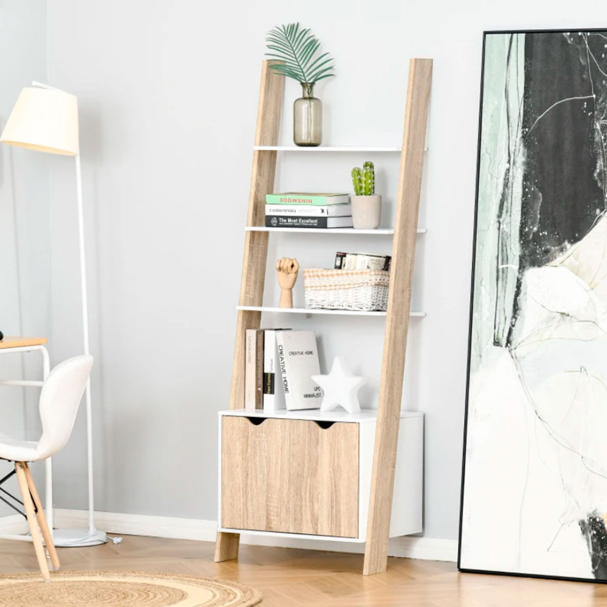 Nos encantan los muebles de estilo nórdico, por ello, esta estantería de pared de Homcom te encantará por su diseño, pero también por su funcionalidad. Está compuesta por 3 estantes y 1 armario bajo que te ofrecerán gran espacio de almacenaje. Gracias a su versatilidad, podrás utilizarla como expositor de libros o para colocar cualquier tipo de decoración que te guste, ya que podrás usarla como una estantería al uso en un dormitorio u oficina, pero también como mueble de comedor, módulo para ropa en un vestidor, o como un recibidor en la entrada de casa, en cualquier caso, quedará genial sea como sea. Está fabricada con melamina de primera calidad, con patas elevadas para proteger el mueble del polvo y de la humedad. Es muy fácil de montar y de limpiar, ya que sólo necesitarás pasarle un paño húmedo. Además, cuenta con un dispositivo antivuelco para mayor seguridad. ¡No lo pienses más y consigue esta estupenda estantería ahora a un precio de chollo con Embargosalobestia!