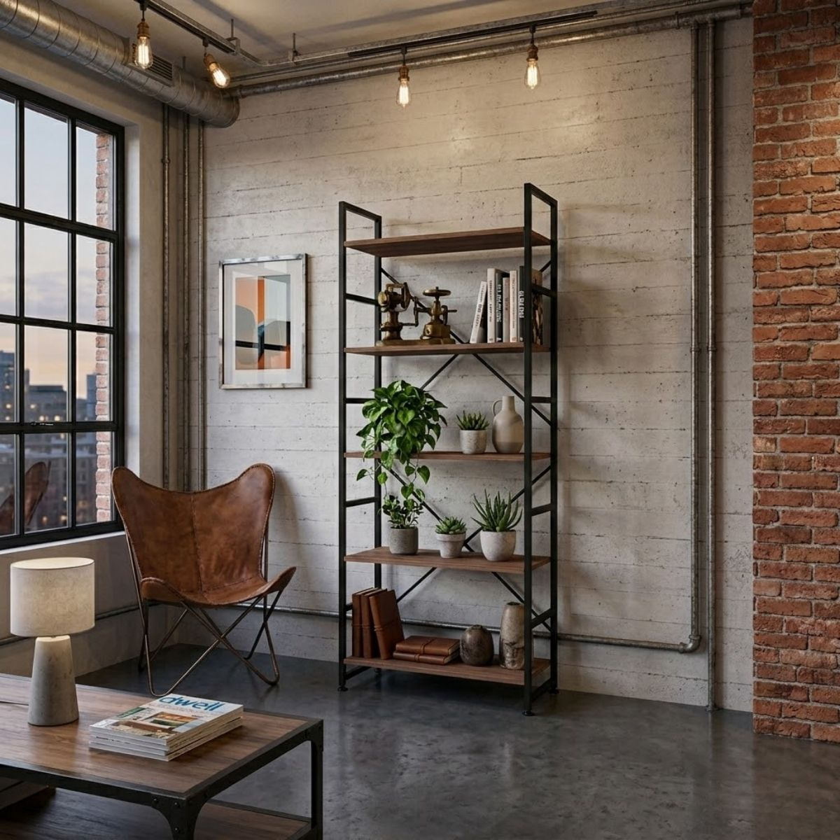 La estantería Hollywood te encantará por su diseño y funcionalidad. Cuenta con 5 baldas en las que podrás colocar cualquier tipo de decoración que te guste, libros, fotos, plantas, etc. Tiene un diseño elegante con un estilo industrial que combinará con cualquier tipo de decoración que tengas. Cuenta con refuerzos en cruz en la parte trasera para darle mayor estabilidad a la estantería. Además, cuenta con pies antideslizantes para mayor seguridad. Podrás colocarla en tu salón, despacho u oficina y quedará genial. ¡Consíguela ahora a un precio de chollo en Embargosalobestia!