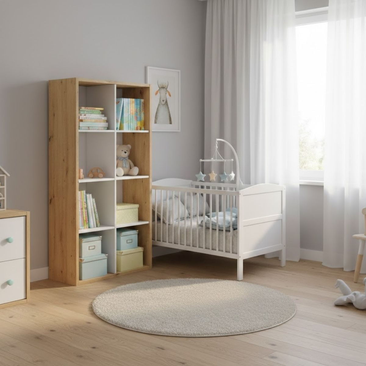 La estantería modelo Junior es el mueble ideal para darle un toque hogareño, acogedor y moderno a cualquier estancia de tu hogar. Gracias a su acabado en color roble nodi y blanco artik (mate), podrás incorporar esta librería en cualquier lugar, ya que te servirá tanto para ordenar las carpetas de tu despacho, como para recoger y almacenar los juguetes en el dormitorio de los más peques. En su estructura, cuenta con ocho huecos compuestos por varios estantes (no regulables en altura). Una de sus ventajas es que podrás colocar la estantería Noa en posición vertical o horizontal, como más te guste.