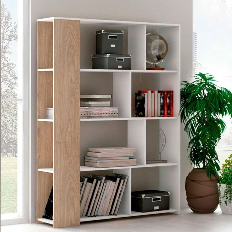 La estantería modelo Soto es ideal para ampliar el espacio de almacenaje en salones, comedores, despachos o incluso dormitorios. Está fabricada en melamina de alta calidad y se caracteriza por contar con un estilo sencillo y minimalista que hará que combine a la perfección con cualquier estilo decorativo. Viene en una combinación de colores que le aporta un toque muy sofisticado. También es perfecta para dividir espacios en estancias de concepto abierto.