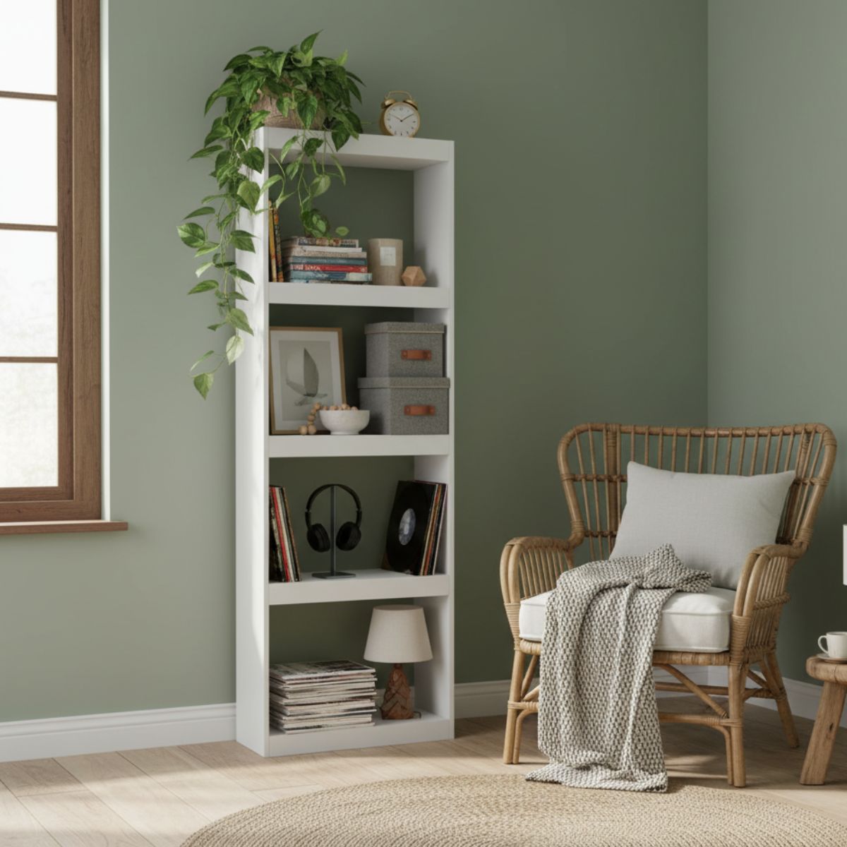 La estantería Talio es una pieza versátil y elegante que combina funcionalidad con diseño contemporáneo. Con sus cuatro niveles de almacenamiento, ofrece una solución práctica para mantener el orden en cualquier estancia, sin renunciar al estilo. Cada uno de sus estantes está diseñado con un formato amplio y resistente, ideal para colocar libros, carpetas, objetos decorativos, plantas o cualquier accesorio que quieras tener a la vista y al alcance. Su diseño limpio y equilibrado la convierte en una opción perfecta tanto para ambientes modernos como para interiores más clásicos o minimalistas. Gracias a su estructura abierta, la estantería Talio aporta ligereza visual y permite que los objetos se integren en la decoración sin sobrecargar el espacio. Esta característica también ayuda a que la habitación se perciba más amplia y luminosa.
