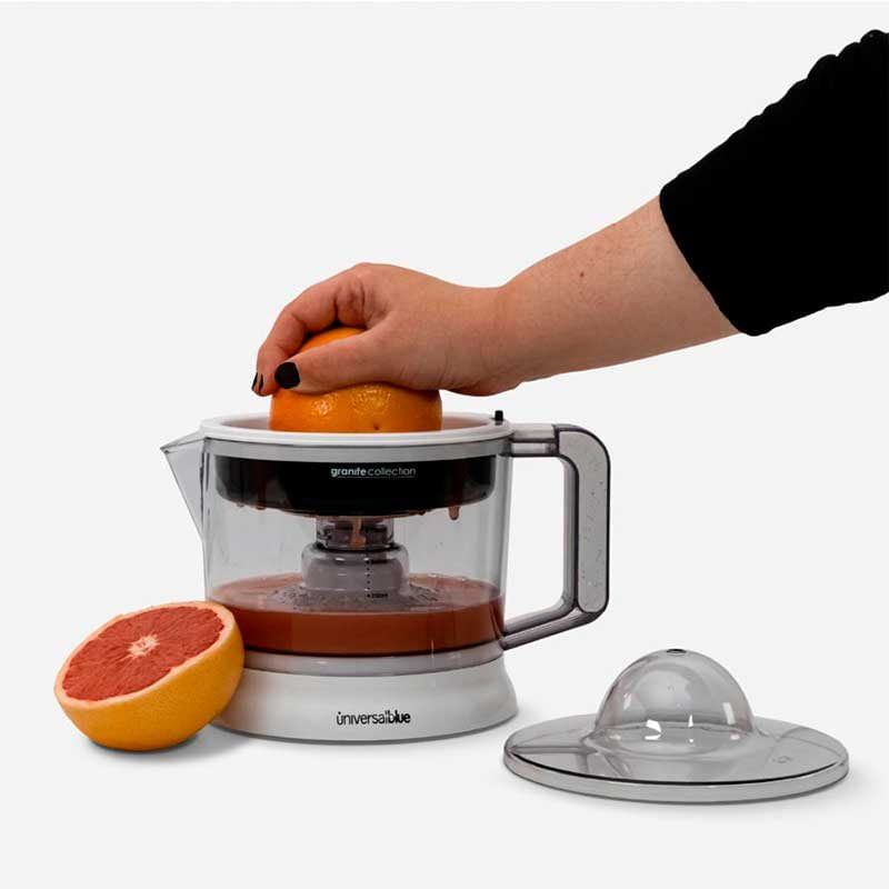 ¿Zumo para desayunar? El exprimidor automático modelo Juicy 40/GR de la marca Universal Blue te permitirá ahorrar tiempo en la cocina sacando todo el jugo de tus cítricos en tiempo récord y acumulándolo en su jarra de 750ml. Cuenta con una potencia de 40W y gracias a su filtro de pulpa podrás decidir si prefieres tu jugo con o sin ella. Con su giro en doble sentido y sus filtros ajustables, no perderás ni una gota de tus frutas favoritas. Además, podrás seleccionar entre sus 2 conos el más adecuado. Además, su base antideslizante y su recogecables, harán que su uso sea cómodo y sencillo. También incluye una cubierta antipolvo para protegerlo de la suciedad.