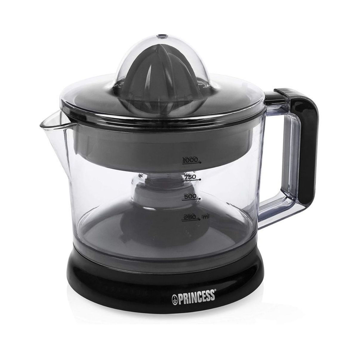 El exprimidor eléctrico Princess 201004 es perfecto para comenzar el día con un vaso de zumo recién exprimido. Su depósito de 1 litro permite obtener suficiente zumo para cuatro vasos, ideal para toda la familia. Este exprimidor cuenta con dos conos que alternan la rotación izquierda y derecha para maximizar la extracción de jugo. El motor se activa automáticamente al presionar el cítrico contra el cono, facilitando el proceso de exprimido. Utiliza el cono pequeño para limones y limas, y el cono grande para naranjas y pomelos. La tapa transparente evita que el cono se presione accidentalmente y mantiene las piezas libres de polvo. Además, el filtro de pulpa ajustable te permite controlar la cantidad de pulpa en tu zumo.