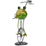 ¿Quieres decorar la zona exterior de tu hogar y darle un toque original? Con esta ranita tan simpática lo conseguirás. La figura está fabricada en resistente metal y se trata de una ranita montada en un monociclo con una postura muy expresiva. Viene pintada en colores vivos para que destaque entre la vegetación de tu jardín y gracias a su base es muy estable. Ideal para interior y exterior, esta rana te alegrará la vista y te ayudará a decorar tu hogar. ¡Consíguela al mejor precio en Embargosalobestia!