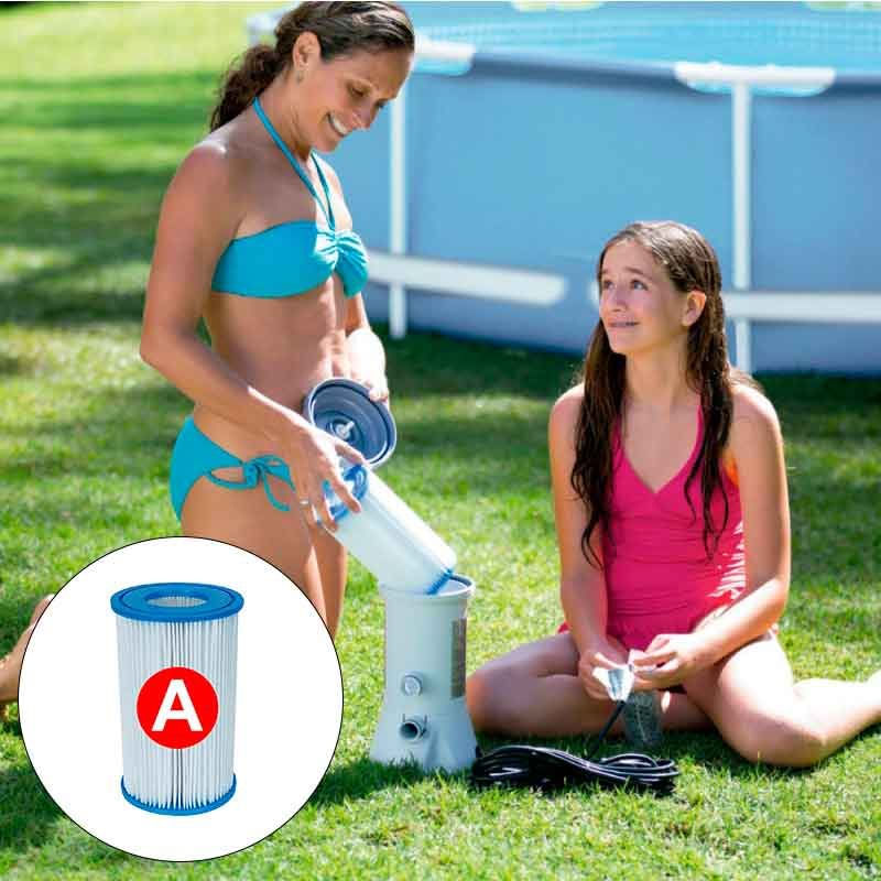 El filtro para depuradoras de cartucho tipo A de la marca Intex cuenta con una altura de 20,2 cm y un diámetro de Ø10,8 cm. Su material filtrante, dispuesto en acordeón alrededor del eje del cartucho, filtra el agua atrapando los residuos e impurezas que no se pueden coger con la red. Su funcionamiento, mantenimiento y reemplazo no podría ser más sencillo. Sólo hay que abrir la tapa de la depuradora, sustituir el cartucho por uno nuevo y la depuradora se queda lista para seguir filtrando el agua. Tiene una vida útil aproximada de 2 semanas.