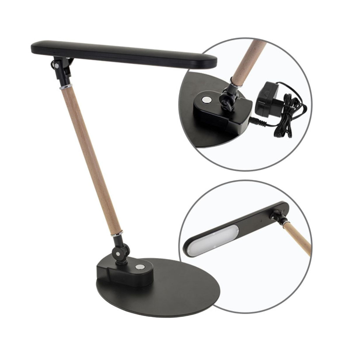 El flexo modelo Dalva de la marca Lumit combina funcionalidad y estilo contemporáneo en un diseño sobremesa de dimensiones ajustables: 30 cm de largo, 17 cm de ancho y una altura de 40 cm, en elegante negro con detalles de madera natural. Equipado con tecnología LED integrada de 5W, proporciona una luminosidad de 280 lúmenes con una temperatura de luz neutra de 4000K, ideal para ambientes como cocinas u oficinas.