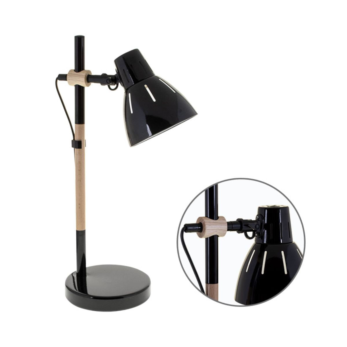 El flexo de sobremesa modelo Dalva de Lumit es una combinación perfecta de estilo y funcionalidad. Con un diseño en negro y madera natural, sus dimensiones de 47 cm de alto y 23 cm de diámetro lo hacen ideal para iluminar y decorar cualquier espacio. Equipado con un portalámparas compatible con bombillas E27 de hasta 11W (no incluida), este flexo ofrece versatilidad para ajustar la iluminación según tus necesidades.