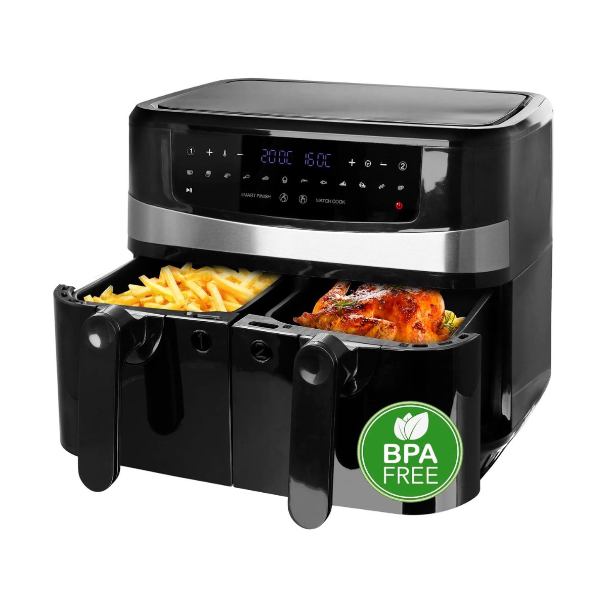 El diseño doble en negro combina elegancia y funcionalidad, mientras que el control táctil intuitivo facilita el ajuste de las configuraciones, permitiendo un manejo preciso con solo un toque. La pantalla incorporada ofrece una visualización clara y cómoda de las opciones y el progreso de la cocción. Entre las características destacadas se incluye un termostato ajustable y un temporizador digital, que te permiten personalizar cada preparación según tus necesidades específicas.