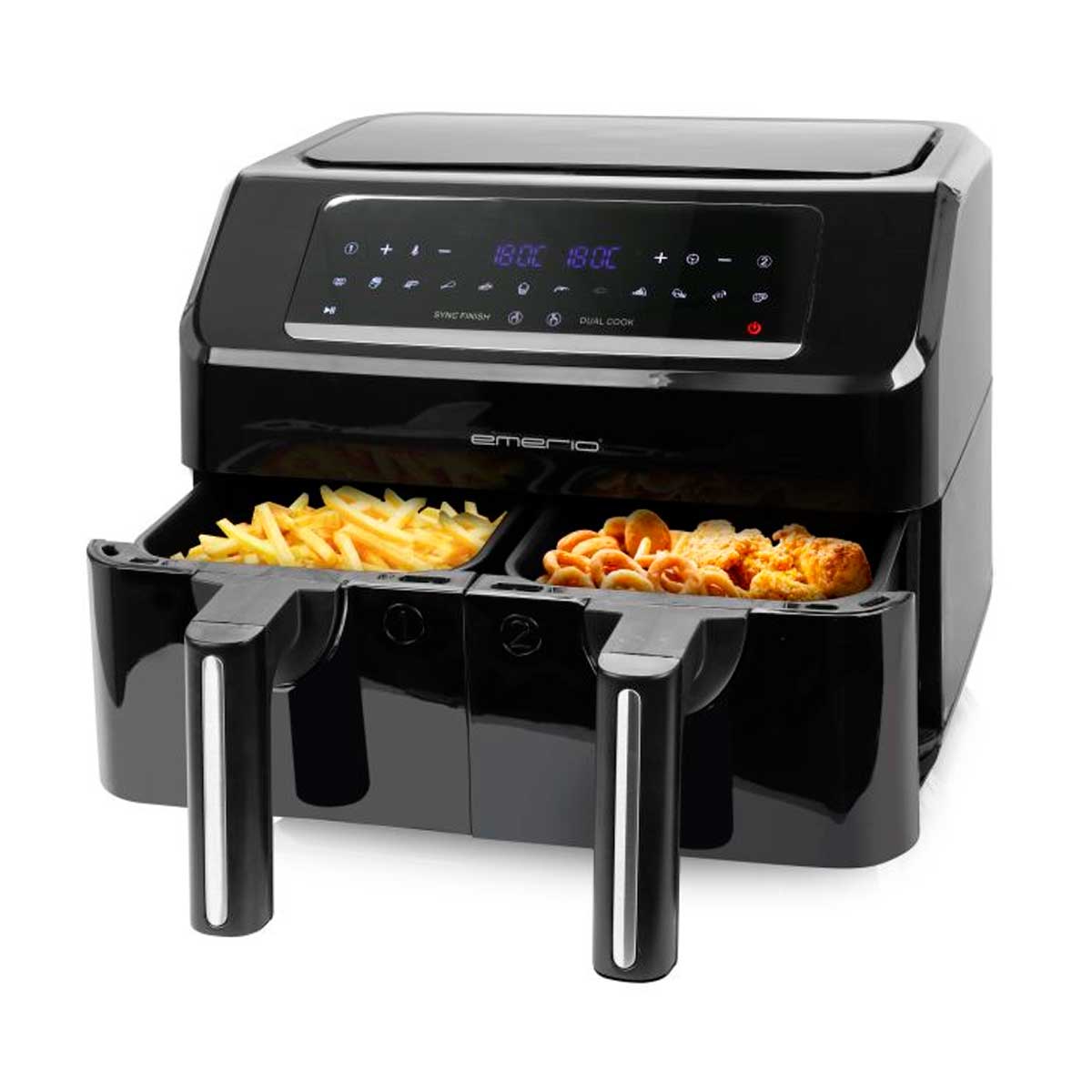La freidora de aire Emerio AF-130376.1 es la solución perfecta para una cocina saludable y versátil. Con una impresionante potencia máxima de 2400W y una capacidad total de 7,2 litros, este modelo cuenta con dos cubetas independientes de 3,6 litros cada una, permitiendo preparar diferentes alimentos simultáneamente gracias a su tecnología Dual Cook.