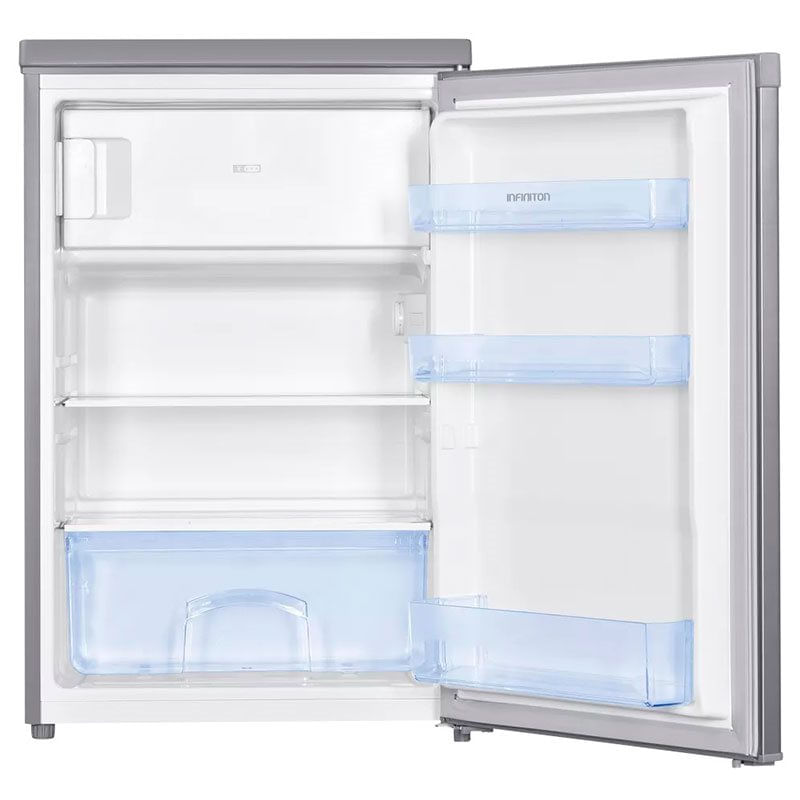 El frigorífico bajo encimera modelo FG-156X de la marca Infiniton se caracteriza por tener una capacidad de 109L repartidor en frigorífico (95L) y congelador (14L) y sistema de frío cíclico. No resultará nada molesto durante su funcionamiento gracias a que cuenta con un nivel sonoro de tan solo 40dB. Su interior viene equipado con 2 baldas, 1 cajón transparente y 3 balcones en la puerta. También cuenta con un compartimento de congelador. El tipo de control es electrónico Indoor. Viene en color inox, su puerta es reversible con cierre magnético y sus patas son regulables en altura.