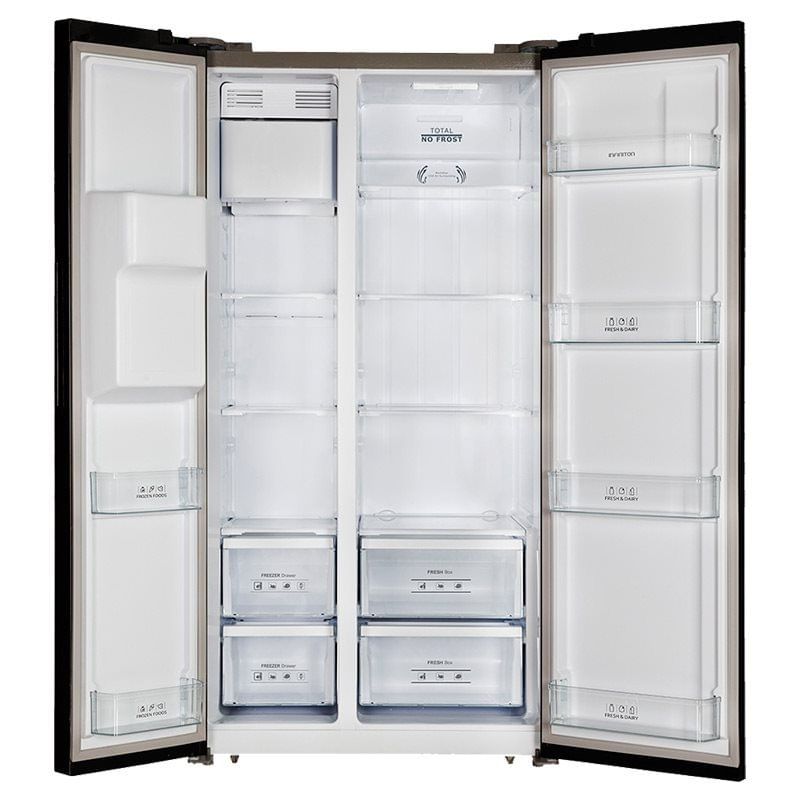 El frigorífico americano Ice Maker SBS-490IMFA de la marca Infiniton tiene una capacidad total de 552 litros, nunca te faltará sitio, además, tiene dos puertas completas, por lo que podrás organizar cómodamente tanto la parte frigorífica con 377 litros y la parte de congelador con 175 litros. Gracias a su dispensador exterior siempre tendrás agua fría y elegir entre hielo picado o en cubitos. Su clasificación energética es F, por lo que ahorrarás en la factura de la luz.