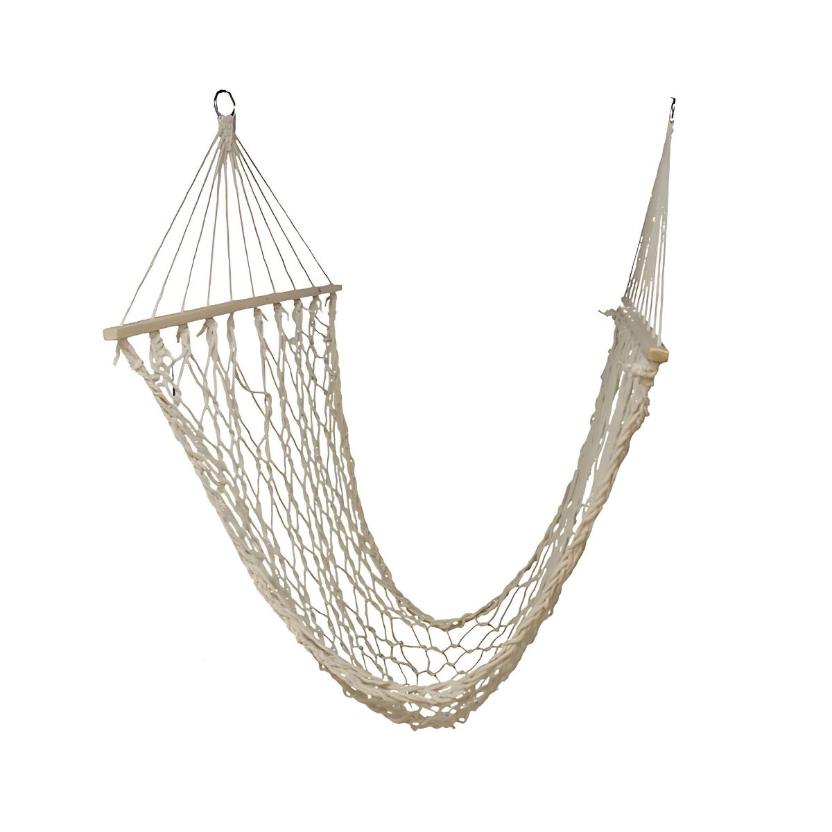 La hamaca de macramé con madera y encantadoras borlas de color beige es una pieza exquisita que añadirá un toque de elegancia y confort a cualquier espacio. Confeccionada con habilidad artesanal, esta hamaca combina la belleza del macramé con la calidez de la madera, creando un lugar acogedor para relajarse y disfrutar de momentos de tranquilidad. El macramé, una técnica de tejido manual que ha perdurado a lo largo de los siglos, se presenta en esta hamaca en toda su gloria, aportando una textura única y un aspecto visualmente atractivo. Cada detalle del tejido está meticulosamente elaborado, creando un patrón intrincado que añade un toque de sofisticación a la pieza. La madera utilizada en la estructura de la hamaca no solo proporciona solidez y durabilidad, sino que también agrega un elemento orgánico y natural al diseño. El contraste entre el macramé suave y las líneas limpias de la madera crea una armonía visual que se integra perfectamente en una variedad de ambientes, ya sea en interiores o exteriores. Las borlas de color beige, delicadamente adornadas en los extremos de la hamaca, añaden un toque de suavidad y feminidad al conjunto. Su tonalidad neutra complementa cualquier paleta de colores, mientras que su elegante diseño aporta un toque de estilo bohemio y chic. Esta hamaca no solo es una pieza decorativa impresionante, sino también un lugar de descanso y relajación incomparable. Colócala en tu terraza, jardín o sala de estar para crear un rincón acogedor donde puedas disfrutar de momentos de tranquilidad leyendo un libro, tomando una siesta o simplemente contemplando el paisaje.