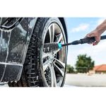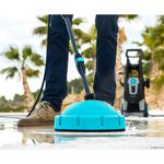 Cepillo 360Brush para limpiar zonas poco accesibles o con suciedad muy adherida, como las llantas del coche. Cepillo EasyClean con amplia superficie de cerdas suaves y eficaces. Su forma triangular es perfecta para acceder a las esquinas y juntas más complicadas. Ruedas y asa de gran tamaño para transportar la hidrolimpiadora sin esfuerzo y poder realizar cómodamente tareas que requieren desplazamiento. Boquilla 3DTurboFlip para generar una salida de agua concentrada a máxima presión y eliminar la suciedad más incrustada de manera rápida y sencilla. Radio de acción superior a 14 metros para un uso cómodo y total libertad de movimientos.