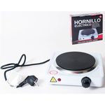 Hornillo eléctrico Color: blanco Material: hierro Portátil 220 – 240V 50 – 60 Hz Potencia: 1000W Resistente al uso Fácil manejo y limpieza Certificado CE Medidas: 22 x 22 x 5 cm Peso: 1,5 kg