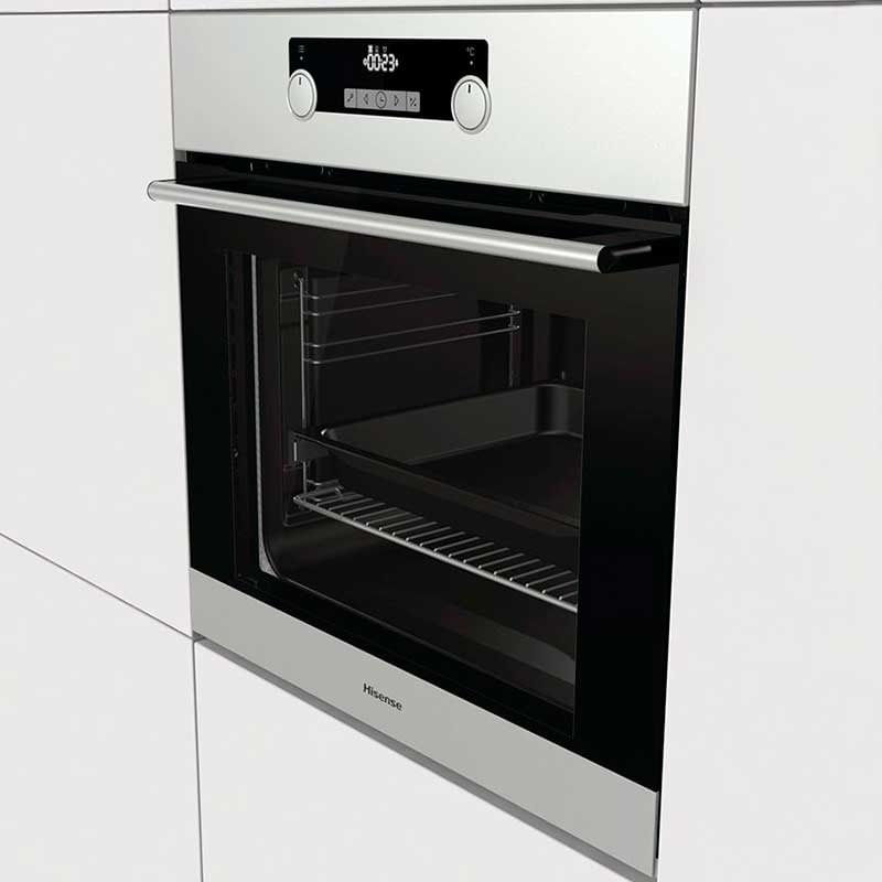 El horno multifunción modelo BI5229PX de la marca Hisense cuenta con una potencia de 3300W y una capacidad total de 70 litros. Viene con 8 funciones de cocción: calefacción superior, calefacción en fondo, calentamiento superior e inferior, cocción vapor, cocina convencional, función descongelar, función recalentar y función autolimpieza. Además, incluye 1 bandeja profunda y 1 parrilla. Su limpieza será muy sencilla ya que es pirolítico.