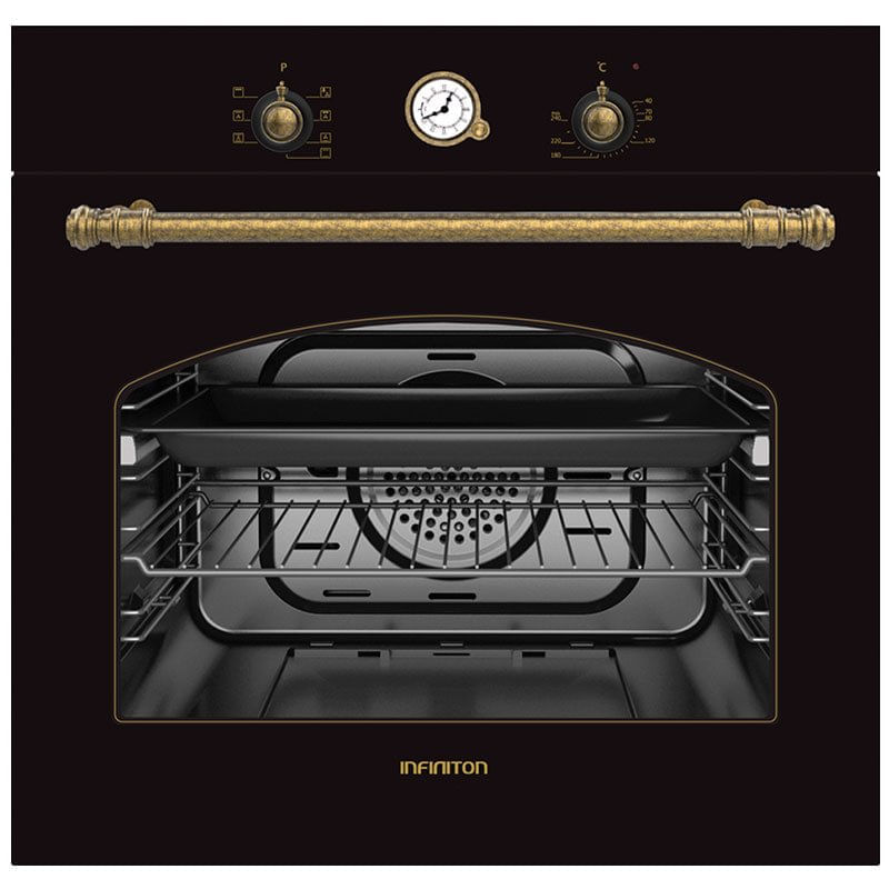 El horno modelo ROT70 de la marca Infiniton se caracteriza por su capacidad de 64L y dispone de una potencia máxima de 1800W. Su diseño exclusivo realzará el estilo de tu cocina exaltando su elegancia. Disfrutarás de cocinar a tu gusto tus recetas gracias a su rango de temperaturas entre 40ºC y 240ºC. Viene con 8 funciones que se adaptarán a la perfección a todas tus preferencias y necesidades: ventilador, grill doble+ventilador, calentador inferior+ventilador, calentador superior/inferior, calentador superior, calentador superior+inferior+ventilador, grill y descongelación.
