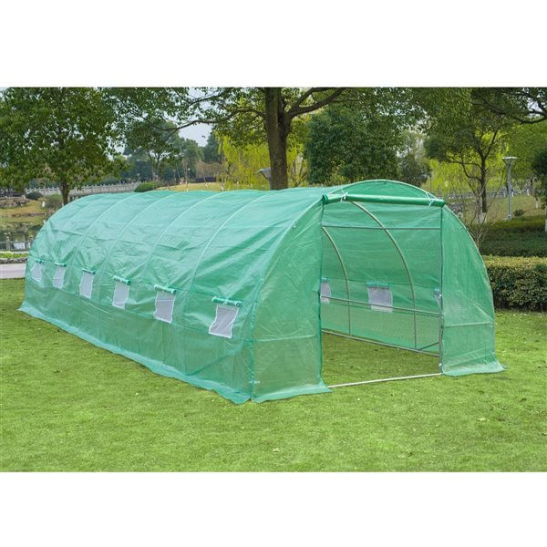 Este invernadero de túnel está construido con acero y polietileno 140 g/m² para proteger tus plantas, tomates y verduras, quedará perfecto en tu jardín. La tela lateral es unos 20 cm más larga que la estructura de metal. El borde inferior se puede enterrar en el suelo o poner piedras encima para potenciar el cierre del invernadero por los lados. Viene con 12 ventanas con mosquiteras y una gran entrada desplegable, con cremallera, para que el aire circule.