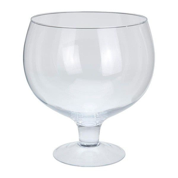 Elegante jarrón de cristal transparente, de gran versatilidad y muy decorativo. En su interior podrás poner flores secas, velas aromáticas, piedras de colores, o incluso, utilizarlo como una original pecera. Tiene forma de copa de coñac, bordes redondeados, una altura de 28 cm y un diámetro superior de 23 cm. También cuenta con una sólida base circular para ponerlo sobre superficies lisas.