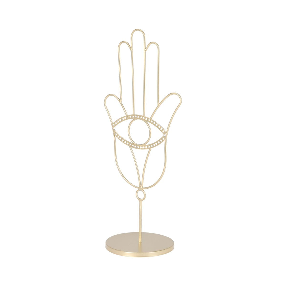 Perfecto para colocar sobre una cómoda, un tocador o incluso como adorno en un espacio sagrado, este joyero ofrece compartimentos cuidadosamente diseñados para organizar anillos, pulseras, collares y pendientes. Su forma estilizada y su color metálico aportan un toque contemporáneo que se adapta a cualquier estilo de decoración, desde lo clásico hasta lo minimalista. Ideal como regalo con significado o como un detalle especial para uno mismo, este joyero es una fusión armoniosa entre arte, simbolismo y funcionalidad. Cada vez que lo uses, sentirás la presencia protectora y espiritual de la Mano de Fátima, custodiando tus tesoros más íntimos.