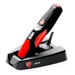 Las cuchillas extraíbles facilitan una limpieza precisa y son ajustables a una precisión de 0,3 mm. Los diferentes peines de separación incluidos proporcionan 33 ajustes de corte desde 0,6 mm a 12 mm para cada tipo de estilo y fisionomía. El kit de aseo personal está equipado con una afeitadora corporal para la máxima comodidad, una mini afeitadora para zonas pequeñas como mejillas, cuello y mentón y un recortador vertical con una cuchilla ergonómica para la nariz, las orejas y el pelo de las cejas. Un cepillo especial para mantener la barba siempre suave y limpia y las tijeras ideales para barbas más largas completan el top de la línea de recortabarba Ducati por Imetec.