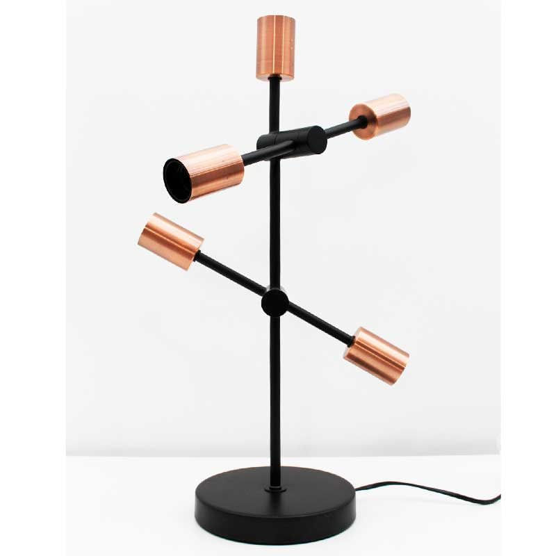 Si eres amante de la decoración de interiores y te gusta darle un carácter y personalidad diferentes a cada una de las estancias de tu hogar, la lámpara modelo Iron Lamp es para ti. Está fabricada en acero de color negro con detalles en color bronce que le dan un toque industrial y original. Cuenta con 5 portalámparas, 1 de ellos fijo y otros 4 que van en 2 brazos regulables para que puedas enfocar la luz en los puntos que desees. En ideal tanto para usarlo a modo de lámpara de noche como para colocarla en cualquier estancia de tu hogar. Esta lámpara es una pieza decorativa única, ¡no te quedes sin ella!