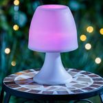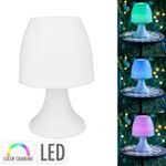 Estupenda lámpara de mesa en color blanco que funciona mediante iluminación LED y que nos ofrece la posibilidad de cambiar el color de la luz a 6 colores distintos (azul, verde, rosa, naranja, amarillo y blanco). Una pieza muy original que nos ayuda a crear un ambiente muy relajante y especial en nuestro hogar, con el color de luz que más nos guste. Esta lámpara está fabricada en ABS de alta calidad y resistencia. Funciona con baterías AAA (no incluidas).