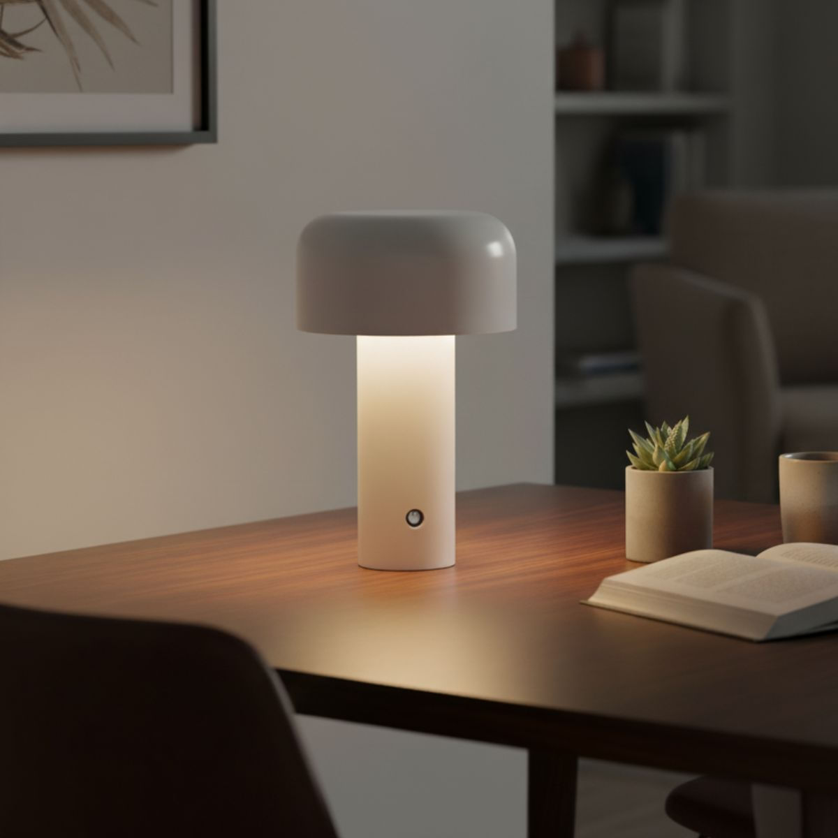 La lámpara de mesa Nora de Vinthera combina un diseño moderno con un estilo futurista que no pasa desapercibido. Con su forma de seta y acabado en color blanco, aporta un toque decorativo elegante y actual, ideal para entradas, dormitorios, salones o incluso cafeterías. Su funcionamiento inalámbrico con batería recargable permite colocarla en cualquier rincón sin depender de enchufes, ofreciendo total libertad para iluminar donde más lo necesites. Con una altura de 21 cm y un ancho de 12 cm, su tamaño compacto la convierte en una pieza práctica y funcional. Emite una luz cálida que crea un ambiente acogedor y relajante, perfecta para acompañar tus momentos de descanso o dar un toque de estilo a tus espacios. Una lámpara que une estética, comodidad y fácil manejo con la última tecnología en iluminación portátil.