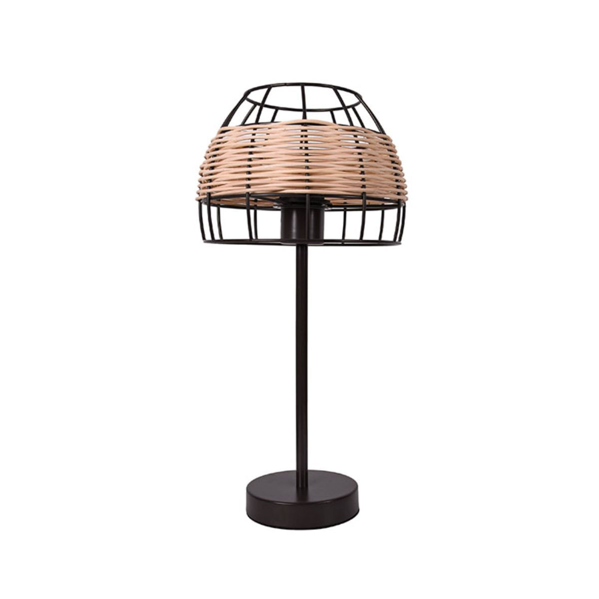 La lámpara Sotero de Lumit no solo es funcional sino también estéticamente atractiva, con un diseño que resalta el mimbre y el metal en su combinación de materiales. Perfecta para salones, dormitorios o cualquier espacio donde se desee añadir un toque de estilo vintage. Con certificación IP20, esta lámpara garantiza un uso seguro en interiores, mientras que su cable eléctrico negro complementa su diseño vintage. Si buscas una pieza que combine nostalgia con funcionalidad moderna, la lámpara de sobremesa modelo Sotero es la elección perfecta para iluminar y decorar tu hogar con un aire retro distinguido.
