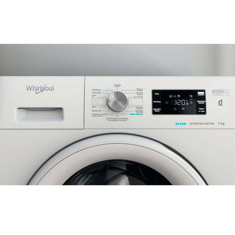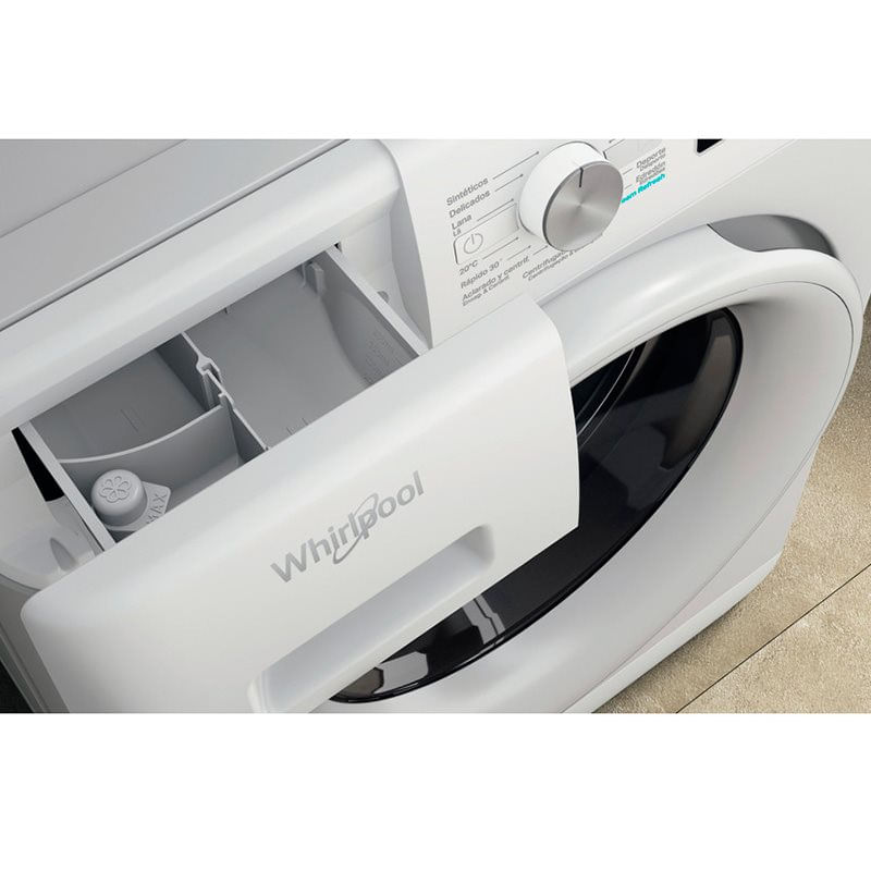 La lavadora de carga frontal modelo FFB 7238 WV SP de la marca Whirlpool con motor inverter cuenta con una capacidad de 7 kg y una velocidad de centrifugado de 1200 revoluciones por minuto. Gracias a su clasificación energética D percibirás un importante ahorro energético en tu factura de la luz. Su consumo energético es de 69kWh por 100 ciclos de lavado. Tiene 13 programas que se lograrán ajustarse a las necesidades de cada una de tus prendas: Algodón 40°, Algodón 60°, Mixto 40°, Sintéticos 30, Lana, Rápido 30', Edredones, Delicados, Deporte, Rinse + Spin, Spinn + Drain, Eco 40-60 y 20°C.