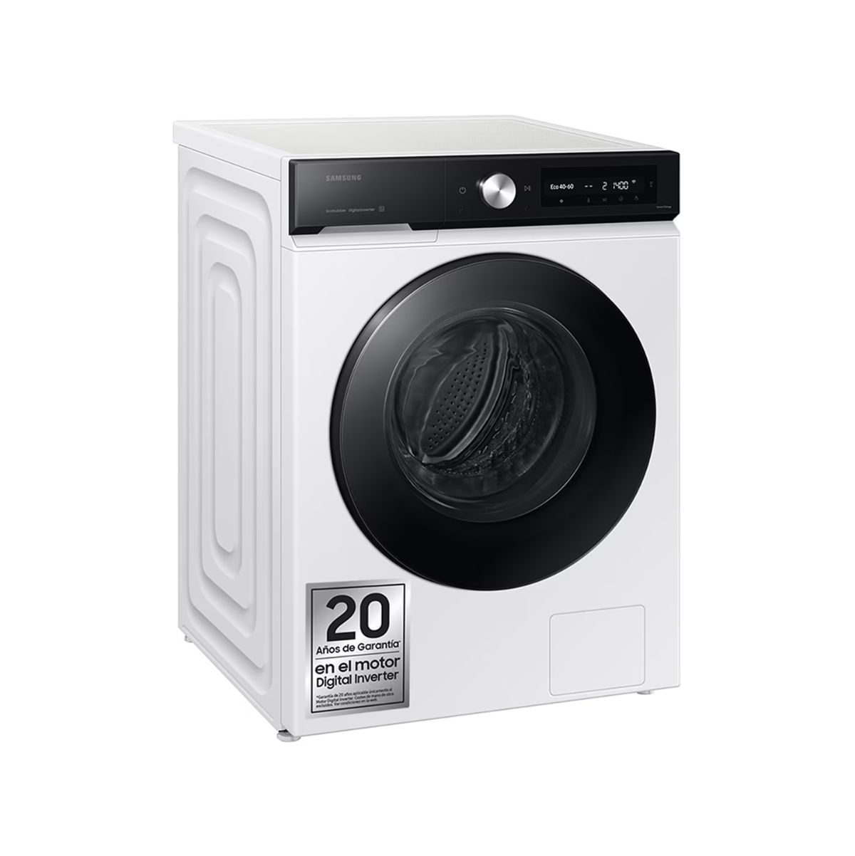 La pantalla LED y el panel de control con botones y giro facilitan la selección de programas, mientras que sus opciones avanzadas, como el Hygiene Steam, aseguran una limpieza profunda y desinfección de la ropa, eliminando bacterias y alérgenos. Con una clase de eficiencia energética A para lavado y una capacidad de secado de 1400 RPM, esta lavasecadora garantiza un rendimiento eficiente y rápido. Su diseño moderno, con puerta y picaporte en negro, aporta elegancia a tu hogar. Además, el modelo cuenta con Wi-Fi controlado, lo que te permite manejar el aparato desde tu smartphone, haciéndolo aún más práctico y accesible. Ahorra tiempo, energía y espacio con la lavasecadora Samsung WD11DG6B85BKU3, la elección ideal para tu hogar.