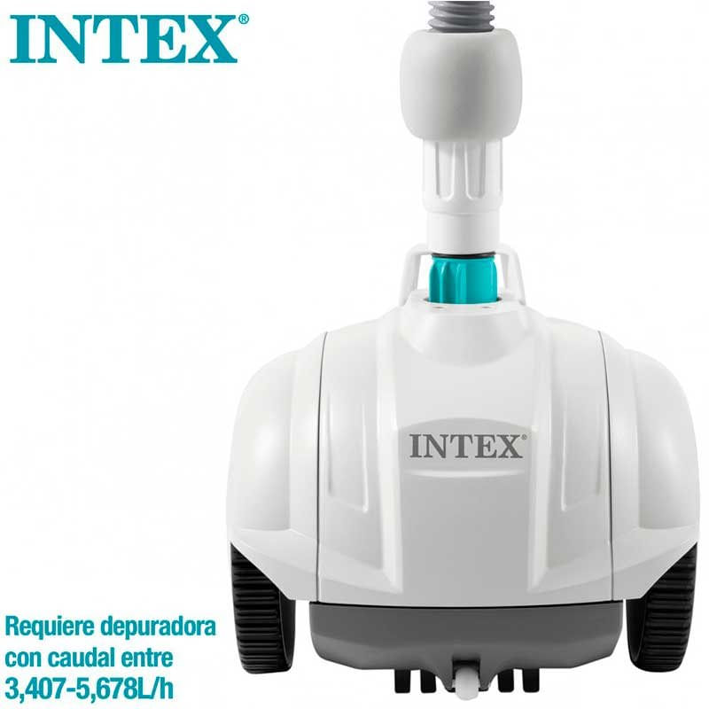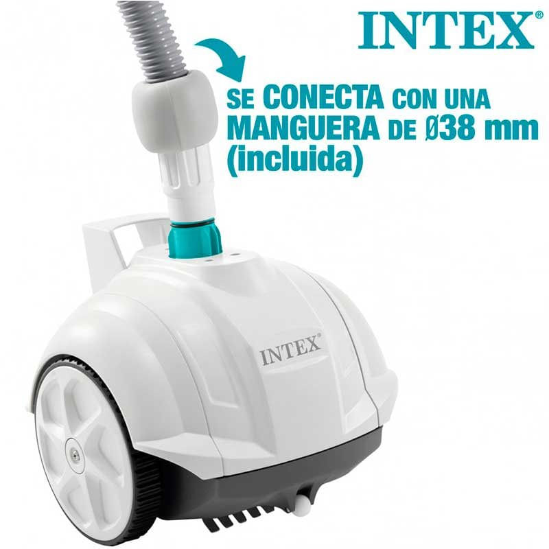 El robot limpiafondos modelo Krystal Clear ZX50 de la marca Inte4x funciona por succión y está pensado para limpiar el suelo de piscinas de pequeño formato. Para que funcione correctamente necesitarás una depuradora de caudal entre 3407-5678L/hora (no incluida). Para instalarlo será tan sencillo como conectarlo a la entrada de agua de la piscina. El robot se desplaza con la presión del agua hasta 5 metros por minuto desincrustando la suciedad y succionándola. Incluye 1 manguera de 6,5 metros antienrredos, 1 recipiente para desechos de 0,8L y giro automático para una mejor limpieza.