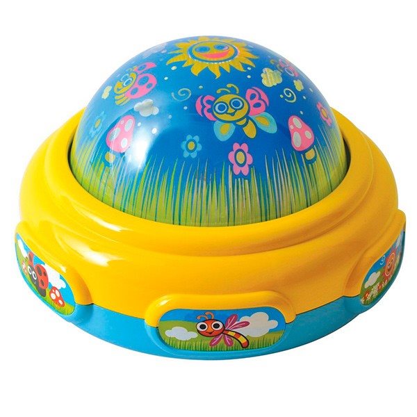 Que tu bebé tenga dulces sueños es posible con este proyector de luz nocturna en el que simpáticas abejitas revolotean por un verde prado en un día soleado y que acompañarán a tu hijo hasta que caiga profundamente dormido. La imagen que se proyectará sobre el techo junto a las dulces melodías que incluye producirá un efecto relajante en los más pequeños. Ofrece una distancia de proyección de 80 cm y la luz que emite durante su funcionamiento se detiene automáticamente a los 4 minutos. Tiene forma semicircular y está recomendado para ser utilizado con niños recién nacidos.